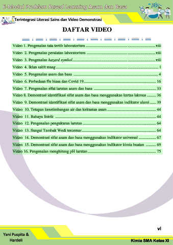Video 15. Demontrasi sifat asam dan basa menggunakan indikator kimia buatan .......... 69