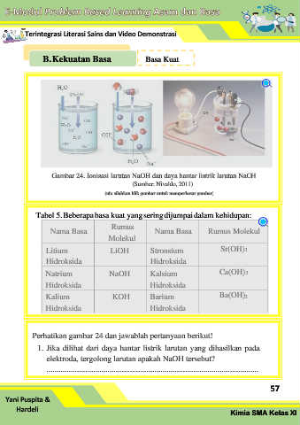 Gambar 24. Ionisasi larutan NaOH dan daya hantar listrik larutan NaOH