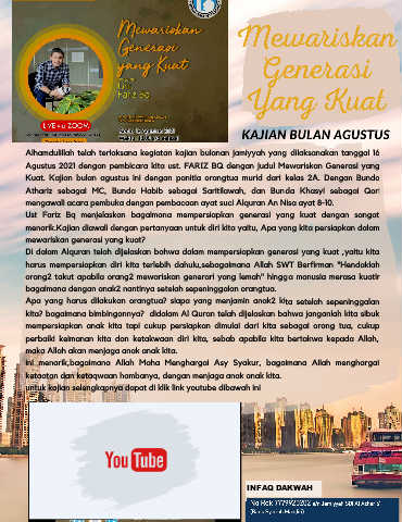 Agustus 2021 dengan pembicara kita ust. FARIZ BQ dengan judul Mewariskan Generasi yang