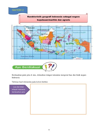 Berdasarkan pada peta di atas, diskusikan dengan temanmu mengenai luas dan letak negara