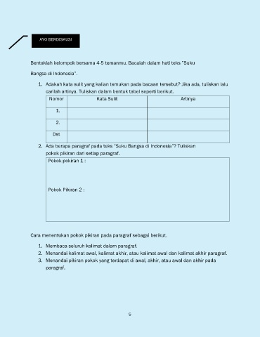 Bentuklah kelompok bersama 4-5 temanmu. Bacalah dalam hati teks ”Suku