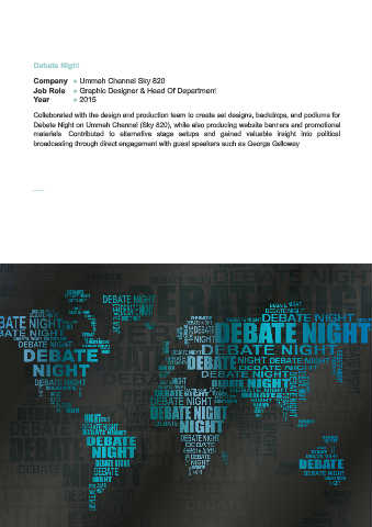 Debate Night on Ummah Channel (Sky 820), while also producing website banners and promotional