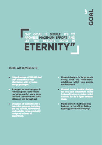 • ● Helped secure a £500,000 deal • ● Created designs for large stands
