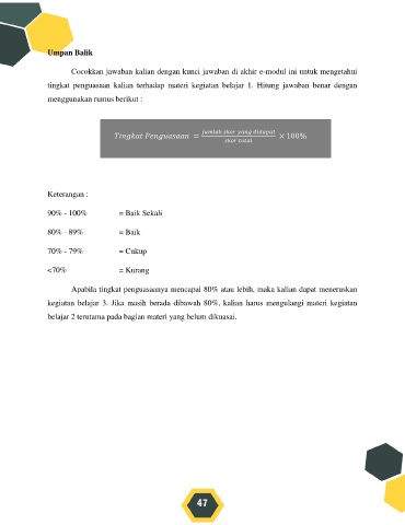 tingkat penguasaan kalian terhadap materi kegiatan belajar 1. Hitung jawaban benar dengan
