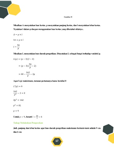 Nyatakan l dalam p dnegan menggunakan luas kertas yang diketahui nilainya .