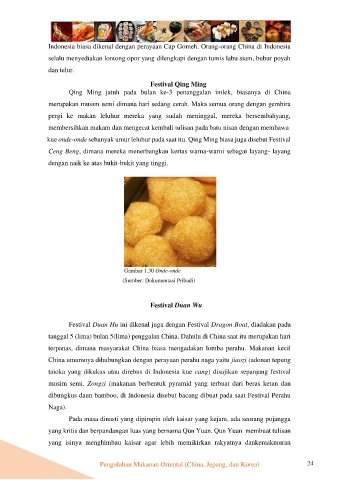 kue onde-onde sebanyak umur leluhur pada saat itu. Qing Ming biasa juga disebut Festival