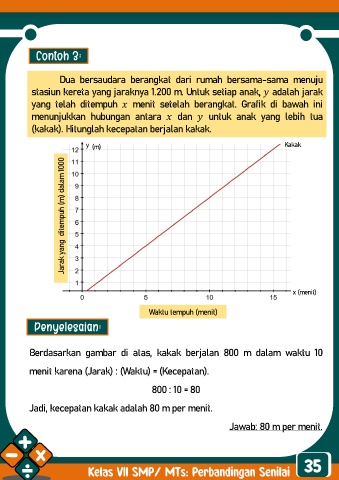 Jadi, kecepatan kakak adalah 80 m per menit.