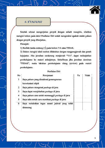 mengisi kolom pada tabel Penilaian Diri untuk mengetahui apakah sudah paham