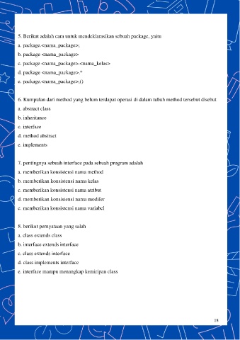 6. Kumpulan dari method yang belum terdapat operasi di dalam tubuh method tersebut disebut