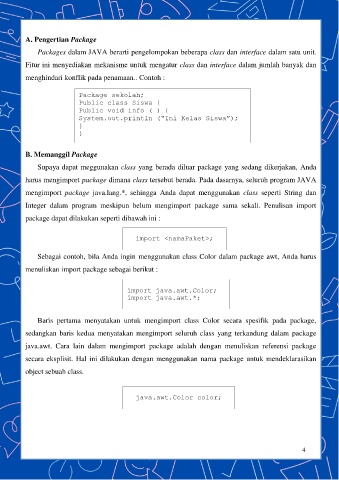 Sebagai contoh, bila Anda ingin menggunakan class Color dalam package awt, Anda harus