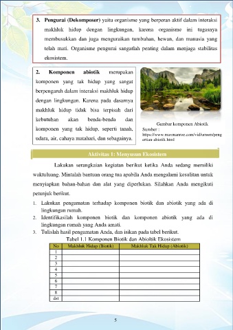 Tabel 1.1 Komponen Biotik dan Abioltik Ekosistem