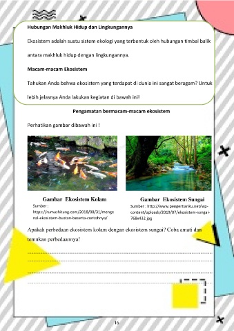 Apakah perbedaan ekosistem kolam dengan ekosistem sungai? Coba amati dan