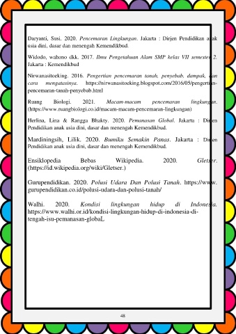 Daryanti, Susi. 2020. Pencemaran Lingkungan. Jakarta : Dirjen Pendidikan anak