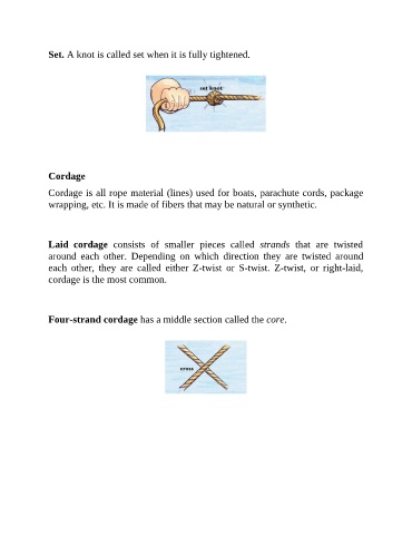 Set. A knot is called set when it is fully tightened.
