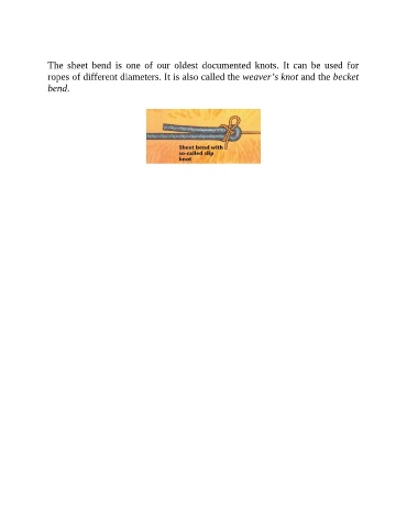 The sheet bend is one of our oldest documented knots. It can be used for ropes of different diameters. It is also called the weaver’s knot and the becket bend.