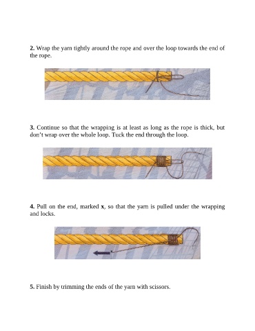 2. Wrap the yarn tightly around the rope and over the loop towards the end of