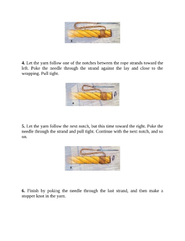 4. Let the yarn follow one of the notches between the rope strands toward the