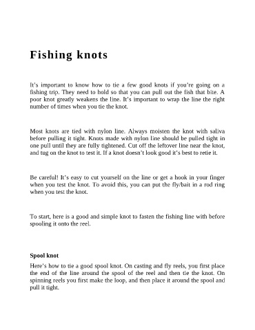 Most knots are tied with nylon line. Always moisten the knot with saliva
