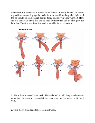 bow ties. The first one, Four-in-hand, is suitable for all occasions.
