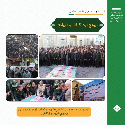 یملاسا بلاقنا نیماما تاراظتنا درکلمع شرازگ سلجم هدنـیاـمـن یربـهر ناگرـبخ ناـتـسلگ ناـتسا تداهش و راثیا گنهرف جیورت یاه هداوناخ زا لیلجت و ادهش عییشت تامسارم رد روضح 36 نارگراثیا و ادهش مظعم