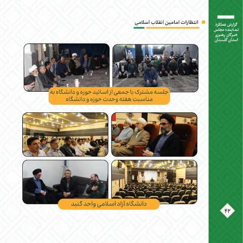 یملاسا بلاقنا نیماما تاراظتنا درکلمع شرازگ سلجم هدنـیاـمـن یربـهر ناگرـبخ ناـتـسلگ ناـتسا هب هاگشناد و هزوح دیتاسا زا یعمج اب کرتشم هسلج هاگشناد و هزوح تدحو هتفه تبسانم دبنپگ دحاو یملاسا دازآ هاگشناد 42
