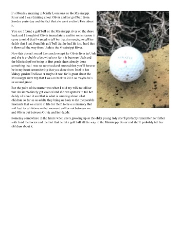 with fond memories and the fact that he hit a golf ball all the way to the Mississippi River and she’ll probably tell her