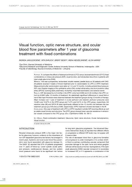 Key Words. Fixed-combination treatment, Glaucoma, Optic nerve structure, Ocular hemodynamics,