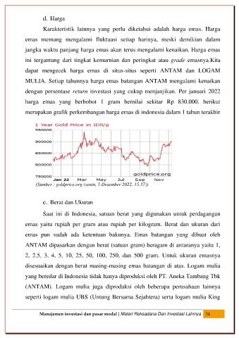 Karakteristik lainnya yang perlu diketahui adalah harga emas. Harga