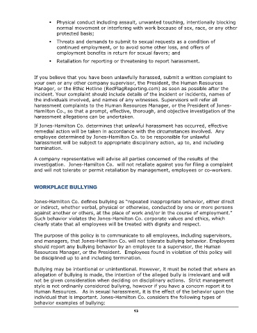 investigation. Jones-Hamilton Co. will not retaliate against you for filing a complaint