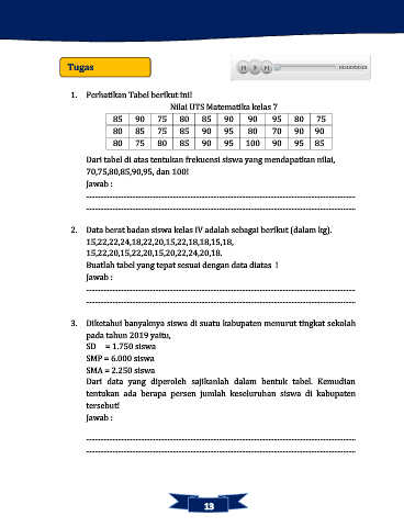 2. Data berat badan siswa kelas IV adalah sebagai berikut (dalam kg).