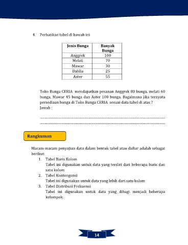 Macam-macam penyajian data dalam bentuk tabel atau daftar adalah sebagai