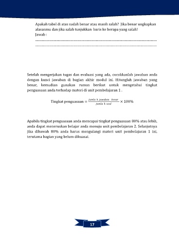 jika dibawah 80% anda harus mengulangi materi unit pembelajaran 1 ini,