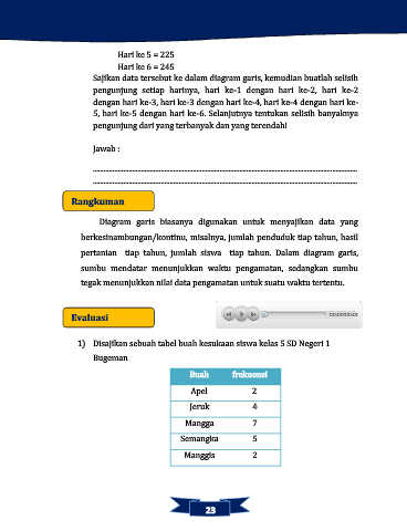 1) Disajikan sebuah tabel buah kesukaan siswa kelas 5 SD Negeri 1