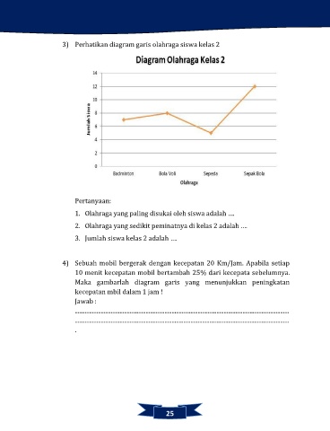 3) Perhatikan diagram garis olahraga siswa kelas 2