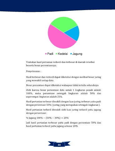 Hasil pertanian terbesar diwakili dengan luas juring terbesar yaitu padi