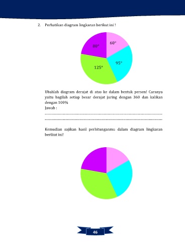 Ubahlah diagram derajat di atas ke dalam bentuk persen! Caranya