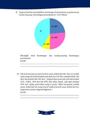 4) Pak andi mempunyai perternakan ayam, bebek dan lele. Saat ini jumlah