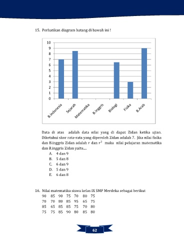 dan B.inggris Zidan adalah dan maka nilai pelajaran matematika