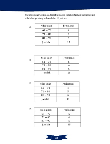 Susunan yang tepat data tersebut dalam tabel distribusi frekuensi jika