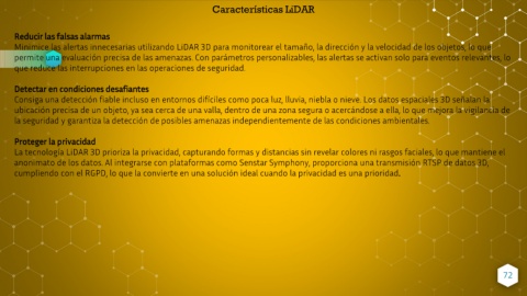 anonimato de los datos. Al integrarse con plataformas como Senstar Symphony, proporciona una transmisión RTSP de datos 3D,