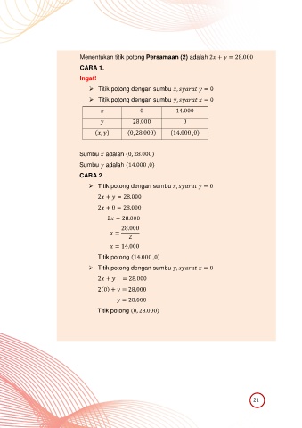 Menentukan titik potong Persamaan (2) adalah 2 + = 28.000