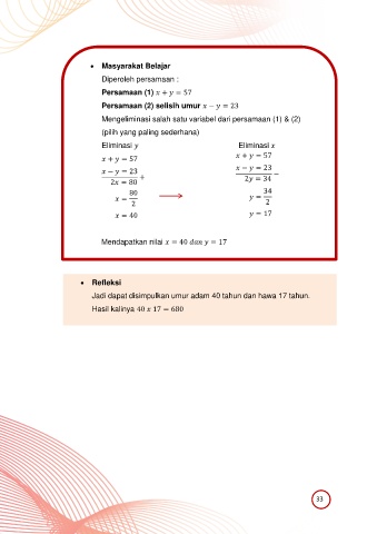 Persamaan (2) selisih umur − = 23