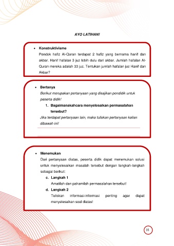 Dari pertanyaan diatas, peserta didik dapat menemukan solusi