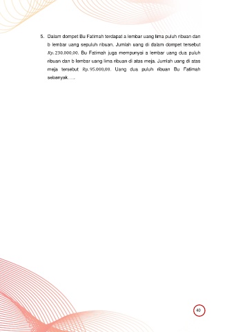 5. Dalam dompet Bu Fatimah terdapat a lembar uang lima puluh ribuan dan