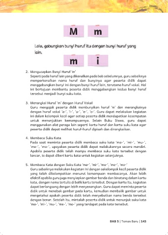 Guru mengajak peserta didik membunyikan huruf ‘m’ dan merangkainya