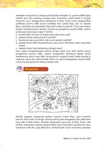 Setelah kegiatan mengamati gambar suasana rumah Bayu, guru meminta