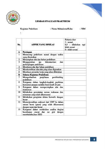 No. ASPEK YANG DINILAI 0,5 : dilakukan tapi