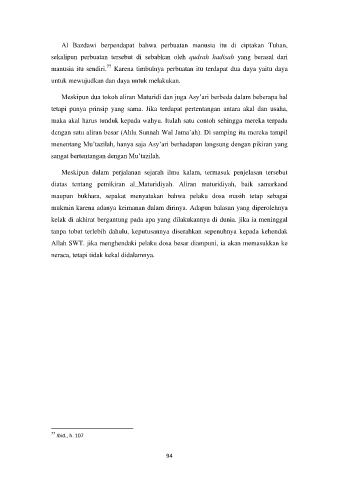 Al Bazdawi berpendapat bahwa perbuatan manusia itu di ciptakan Tuhan,