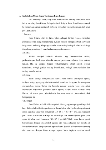 A. Kebutuhan Umat Islam Terhadap Ilmu Kalam