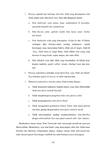 a. Sifat Salbiyyah, yaitu qidam, baqa, mukhalafatul lil hawaditsi,